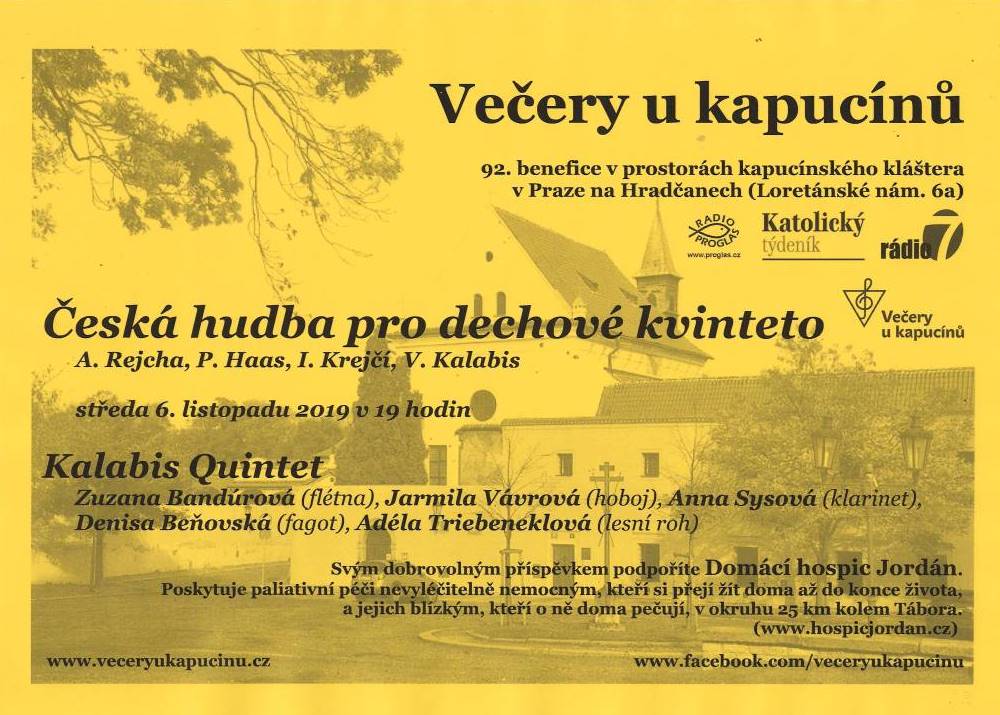 Ve středu 6. listopadu od 19:00 vystoupí na podporu našeho hospice ženské dechové kvinteto Kalabis Quintet.